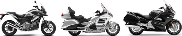 Honda has won plenty of competitions on sport bikes like those above. And Honda has also won the hearts of tens of thousands of touring enthusiasts riding the thundering NC700X (below, left), the incomparable Gold Wing (below, center) or the impeccably sweet ST1300 (below, right).